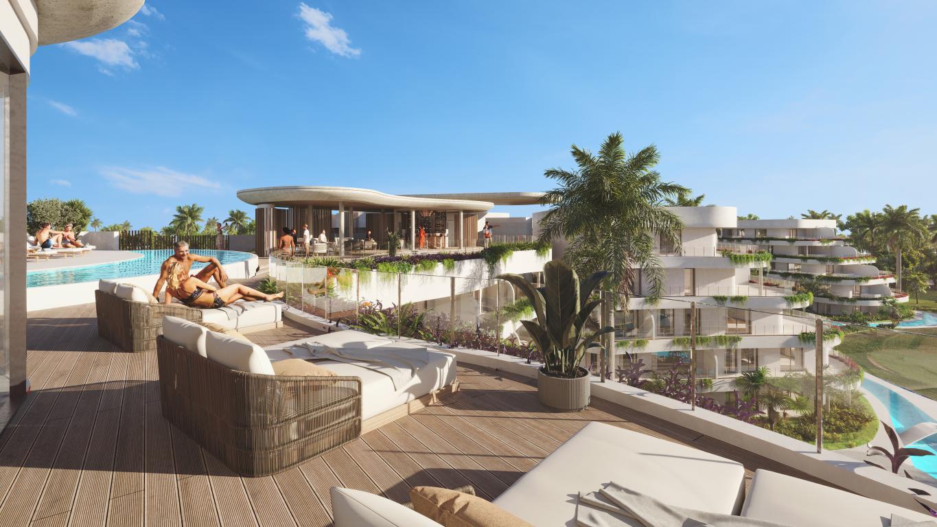 Amenidades: piscinas, rooftop con bar, spa, gimnasio, coworking, restaurante, club infantil, lago para actividades acuáticas, áreas deportivas (pádel, tenis y fútbol), ciclovías y carriles para carritos de golf, sendero alrededor del lago, playa artificial y zona comercial.